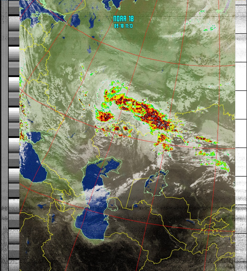 NOAA-18 (MCIR with precipitation) Анализ облачности с облатями метеоактивности