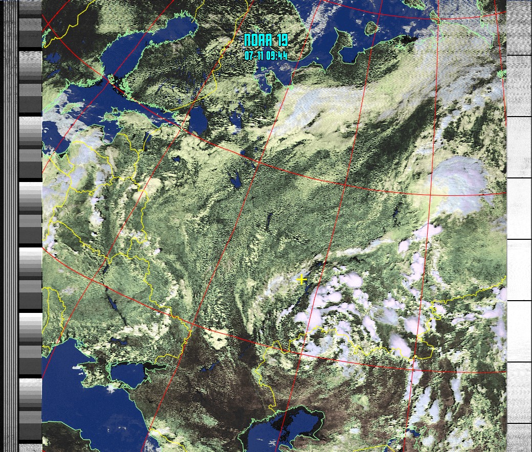 NOAA-19 (HVC false color) Мультиспектральный анализ с областями метеорологической активности
