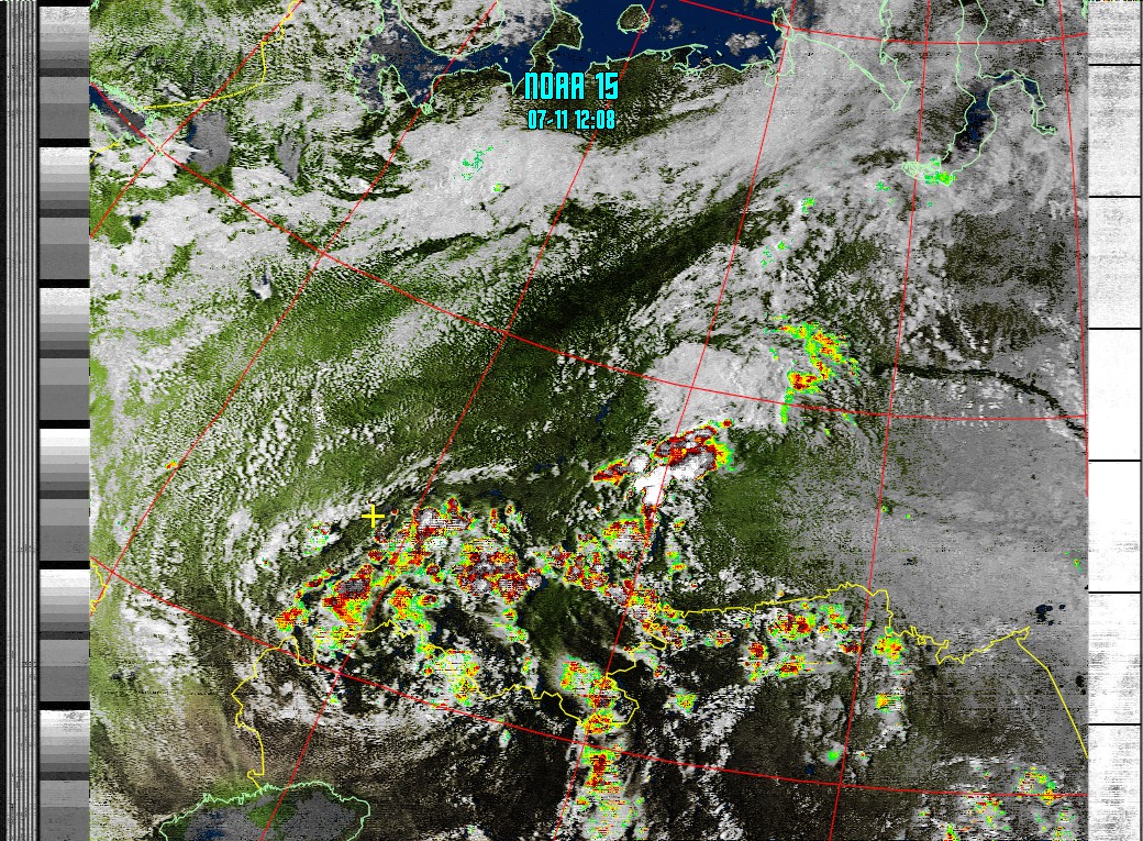 NOAA-15 (MSA with precipitation) Мультиспектральный анализ с областями метеорологической активности