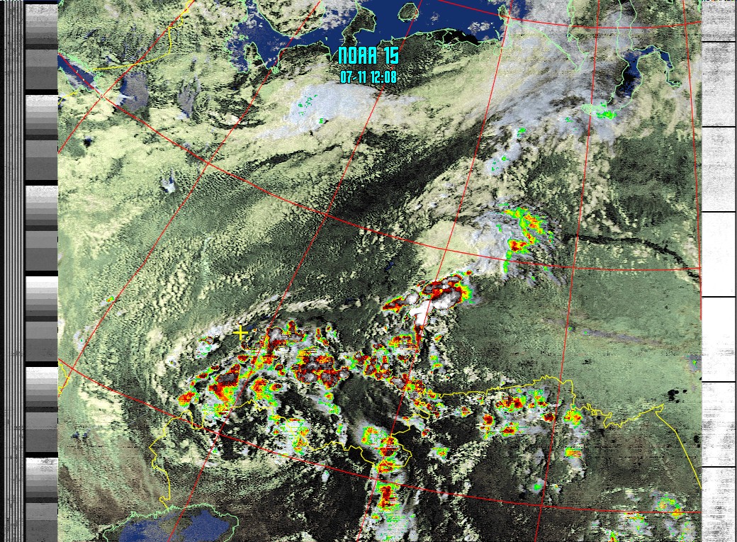 NOAA-15 (HVCT with precipitaztion) Анализ облачности с областями метеорологической активности