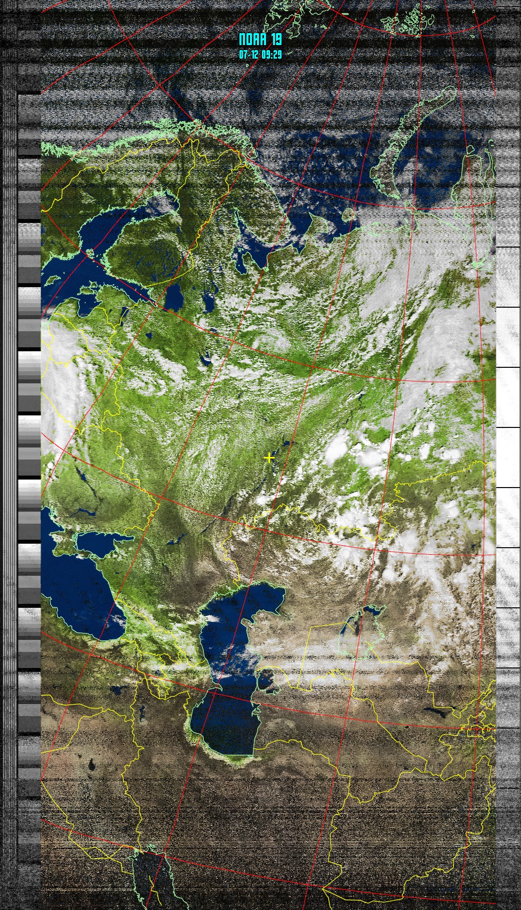 Полное изображение спутник проходил почти на Ульяновском. Однако на углах возвышения менее 30 градусов много помех. Качество изображений низкое пости впо всей траектории.