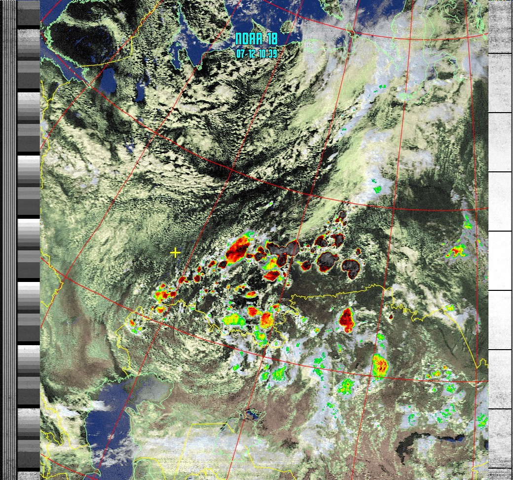 NOAA-18 (HVCT with precipitation) Анализ облачности с областями метеоактивности