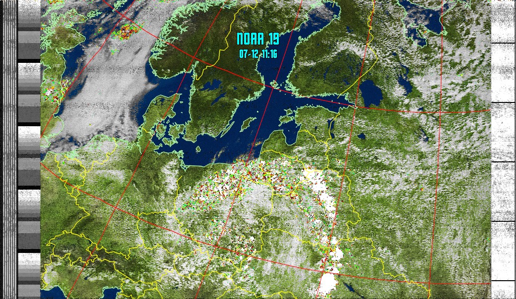 NOAA-19 (MSA with precipitation) Мультиспектральный анализ облачности с областями метеоактивности