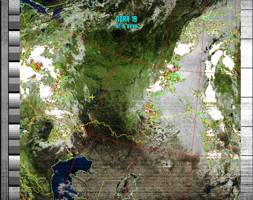 NOAA-19 (MSA with precipitation) Мультиспектральный анализ с областями метеоактивности.
