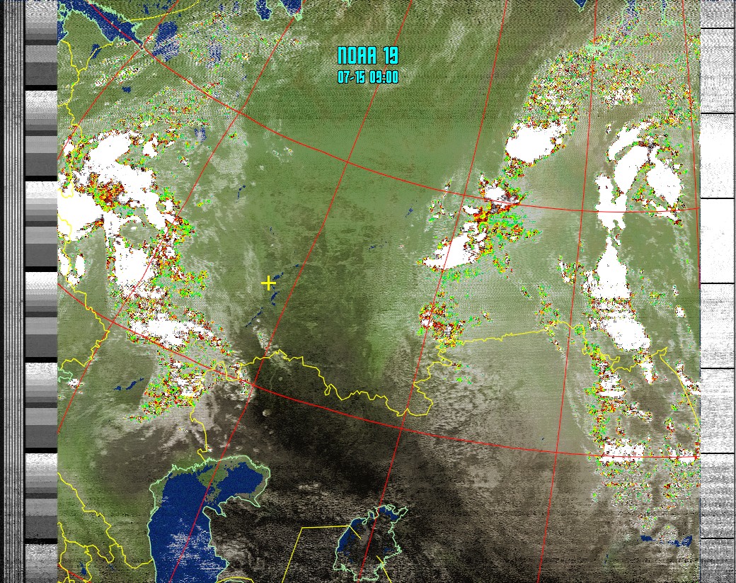 NOAA-19 (MCIR with precipitation) Анализ облачности с областями метеоактивности.