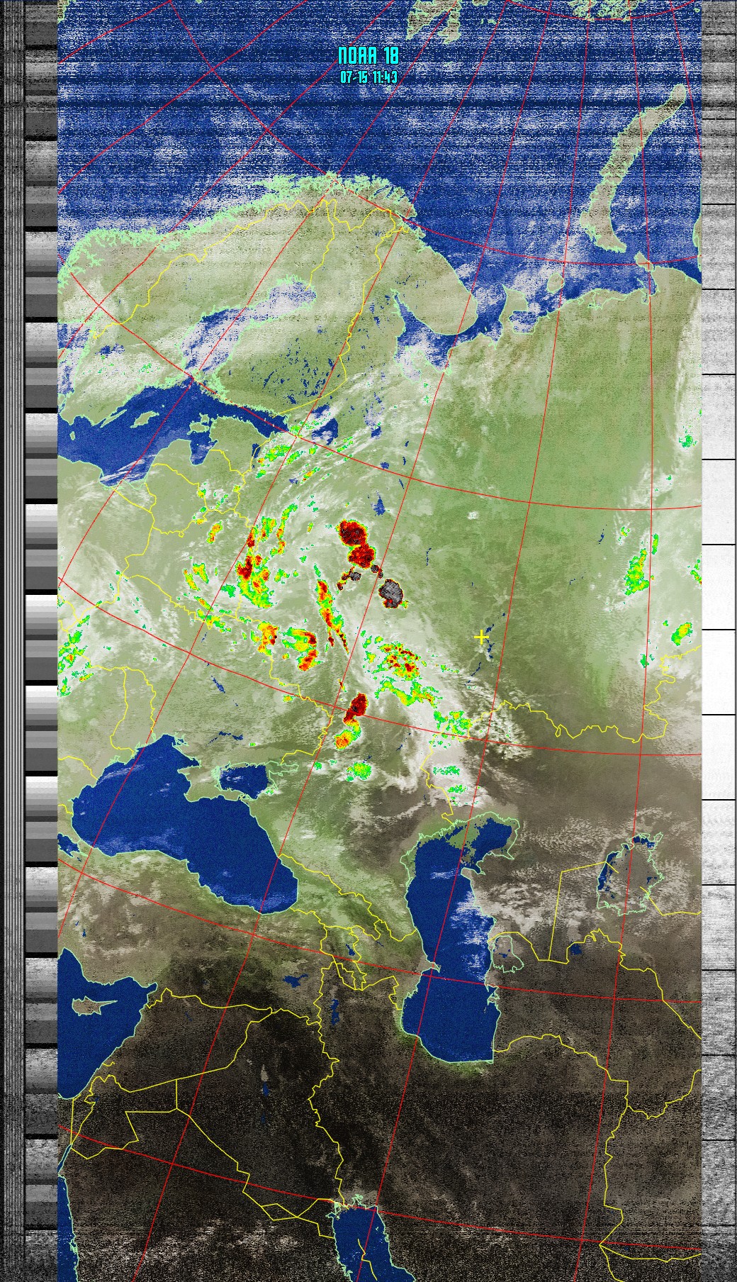 NOAA-18 (MSA with precipitation) Мультиспектральный анализ с областями метеоактивности.