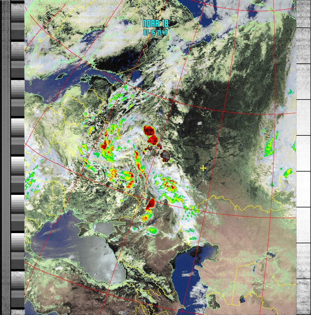 NOAA-18 (HVCT with precipitation) Анализ облачности с областями метеоактивности.