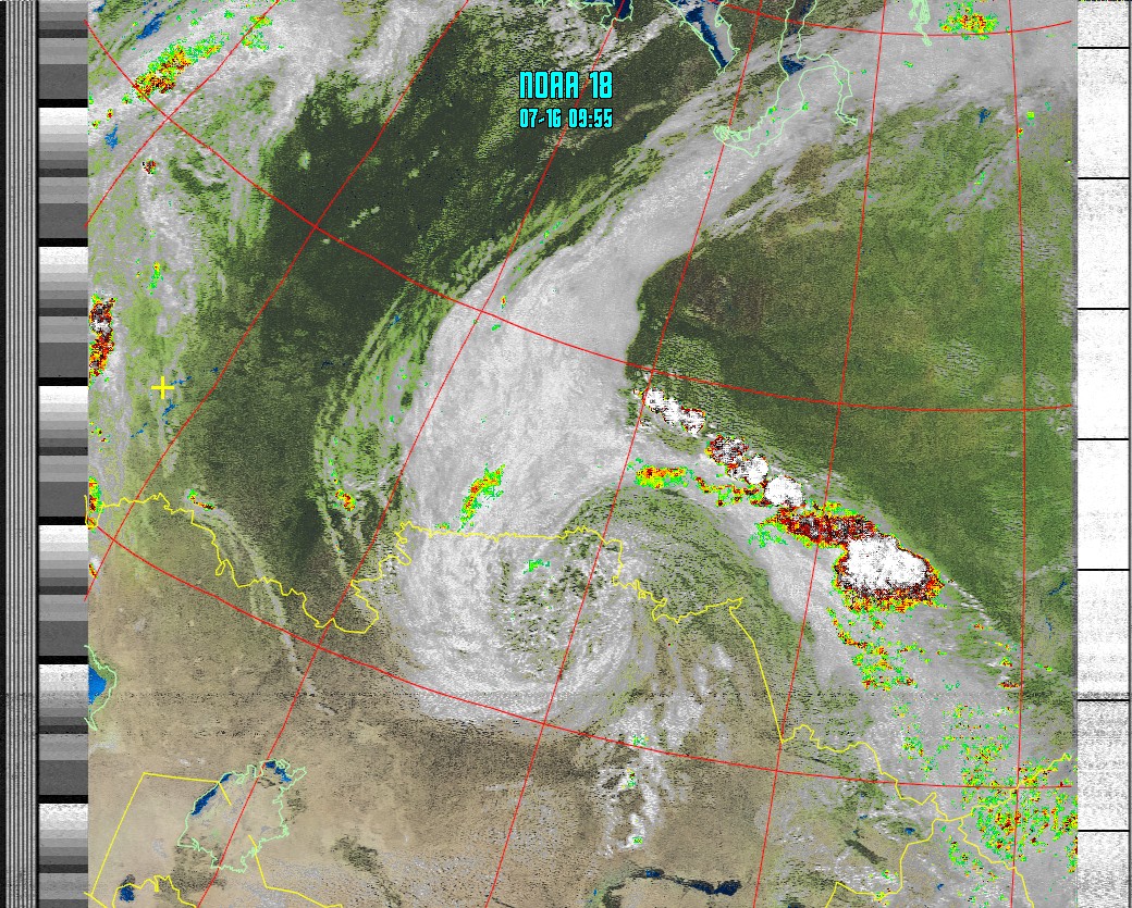 NOAA-18 (MSA with precipitation) Мультиспектральный анализ с областями метеоактивности