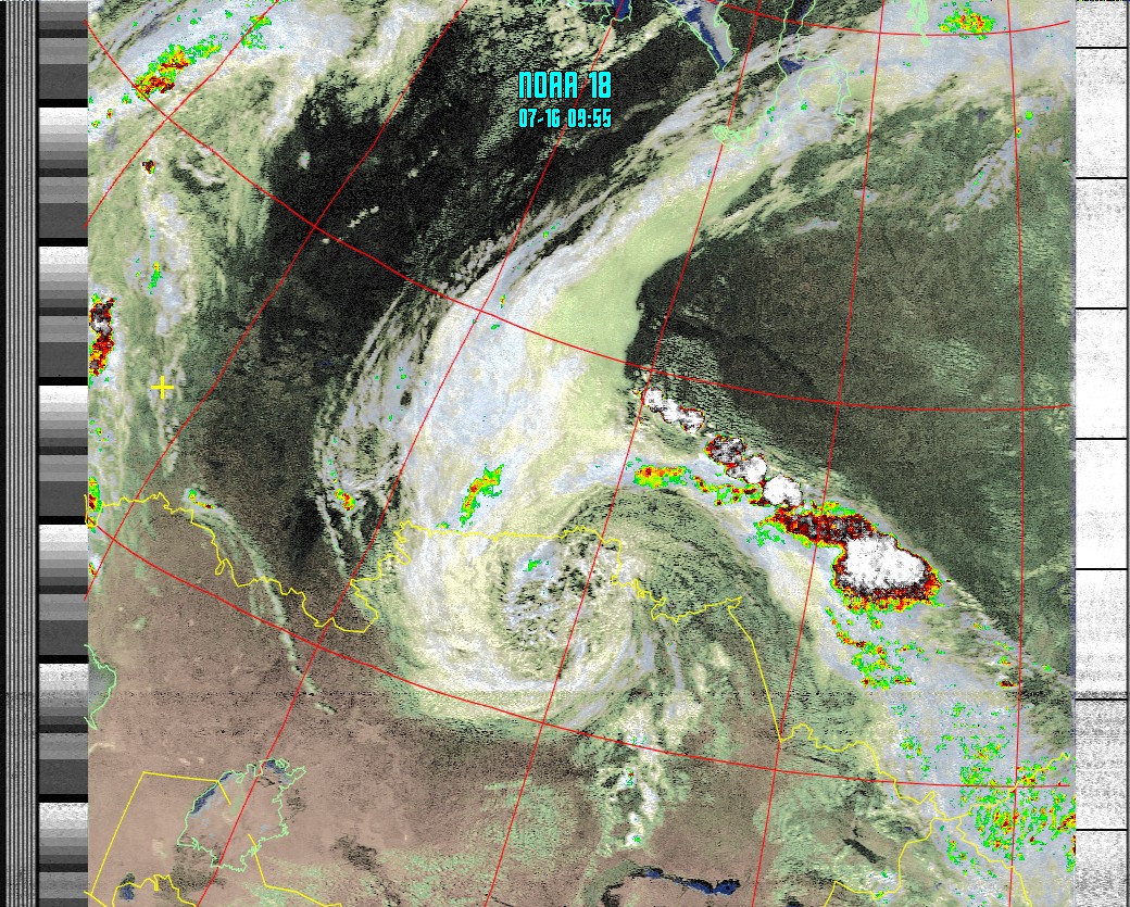 NOAA-18 (HVCT with precipitation) Анализ облачности с областями метеоактивности