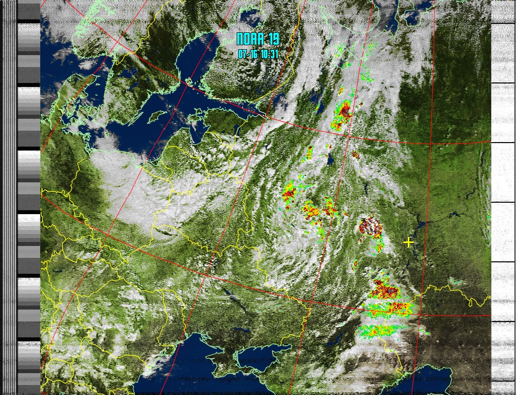 NOAA-19 (MSA with precipitation) Мультиспектральный анализ с областями метеоактивности