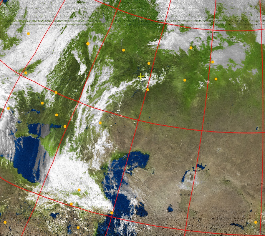 17 апреля на двух фотографиях, полученных с разницей меньше чем 2 часа, Ульяновск находится в разных местах. На этой фотографии практически в центре, а 17 апреля 11 час. 56 мин. у самого края слева? Крестиком обозначен Ульяновск?