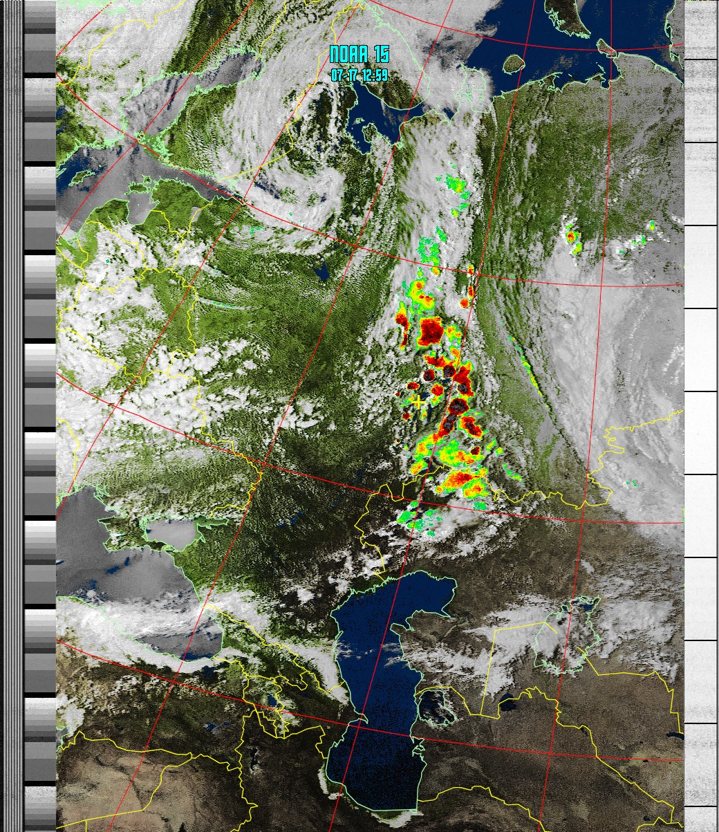 NOAA-15 (MSA with precipitation) Мультиспектральный анализ с областями метеоактивности