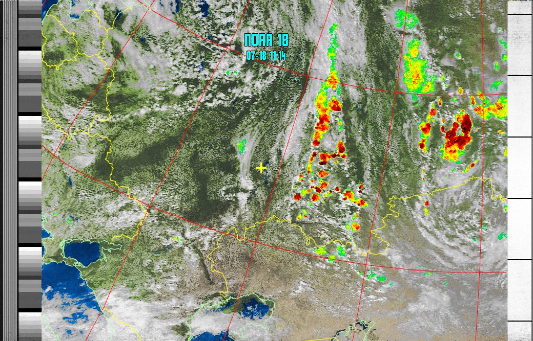 NOAA-18 (MSA with precipitation) Мульти спектральный анализ с областями метеоактивности