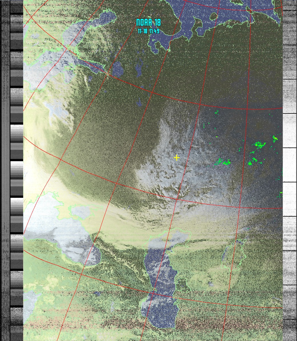 NOAA- 18 (HVCT with precipitation ) Анализ облачности с областями метеоактивности