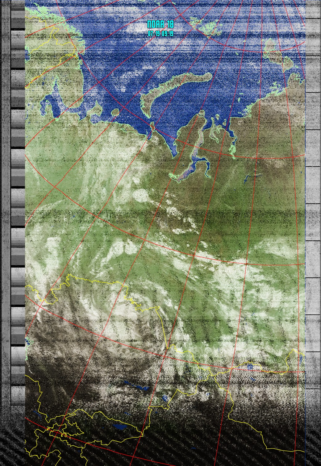 NOAA-18 (MICR map color) Анализ облачности и подстилающей поверхности в цветах географической карты