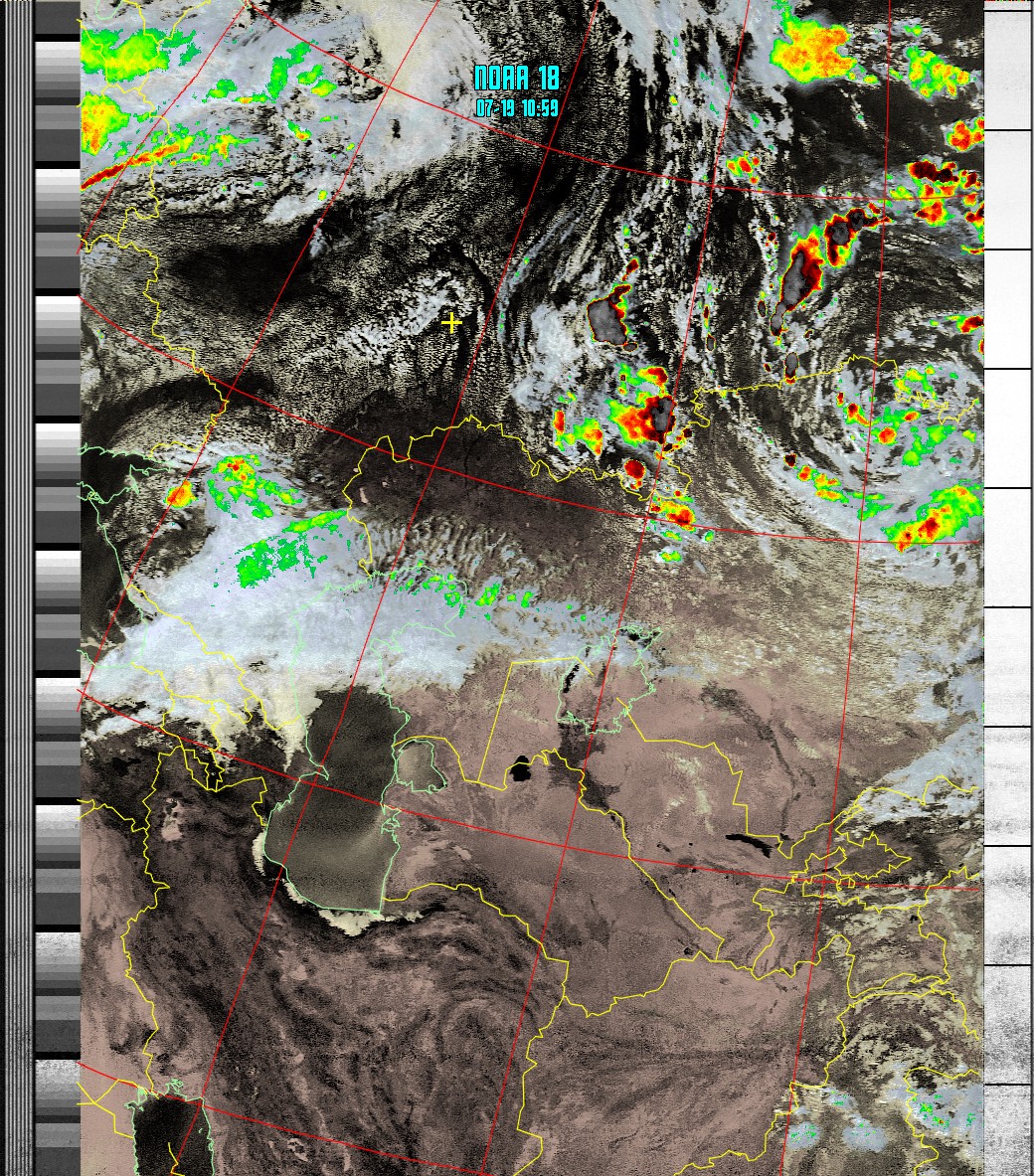 NOAA-18 (HVC with precipitation) Анализ облачности с областями метеоактивности