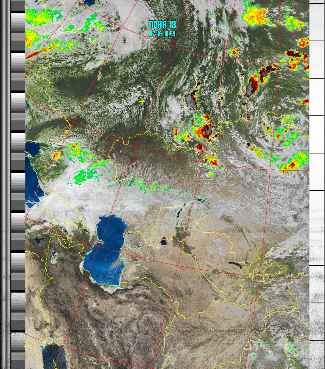 NOAA-18 (MSA with precipitation) Мультиспектральный анализ облачности с областями метеоактивности