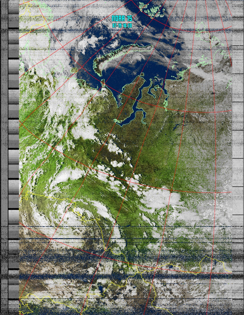 NOAA-15 (MSA with precipitation) Мультиспектральный анализ облачности с областями метеоактивности