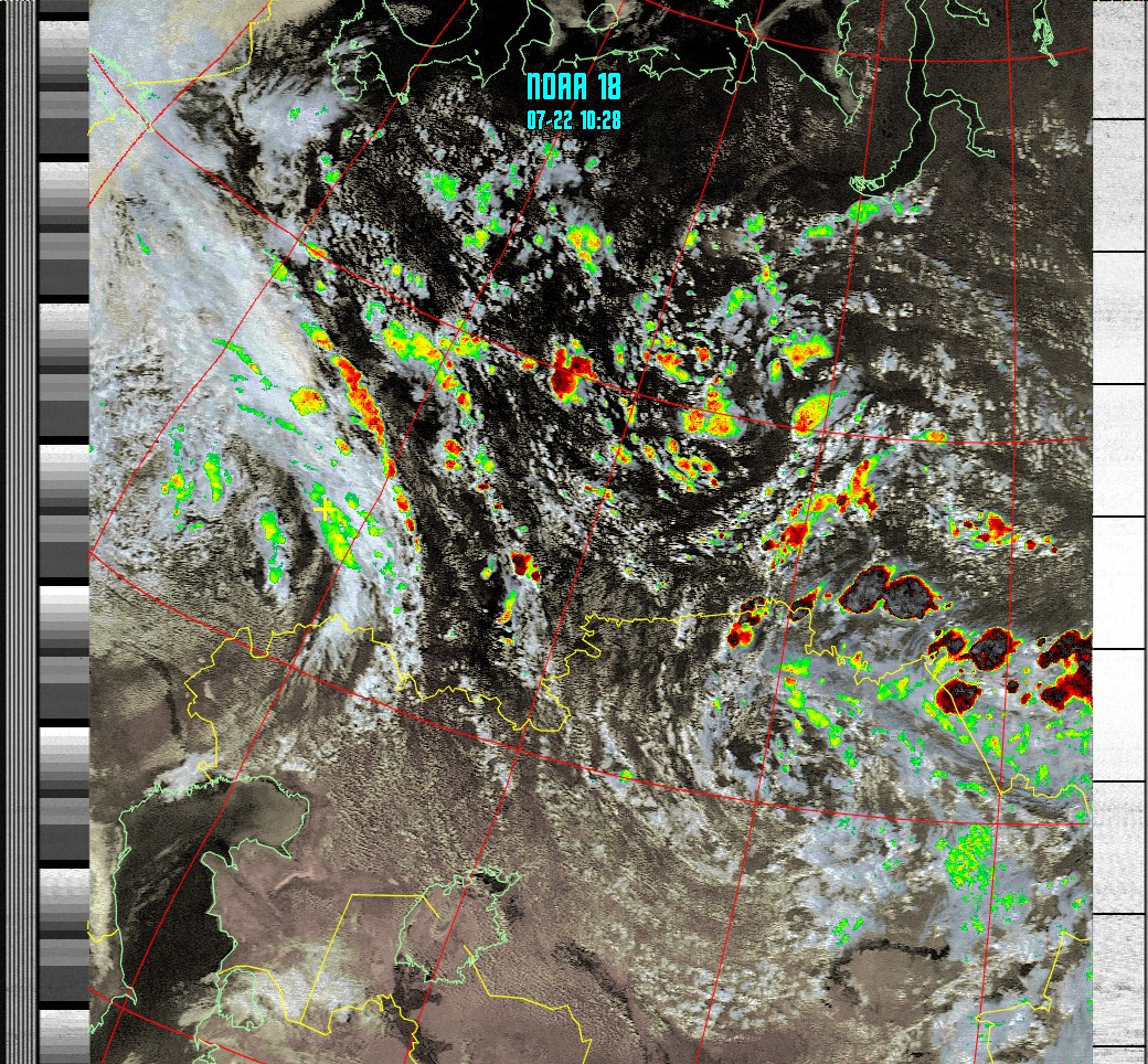 NOAA-18 (HVC with precipitation) Анализ облачности с областями метеоактивности