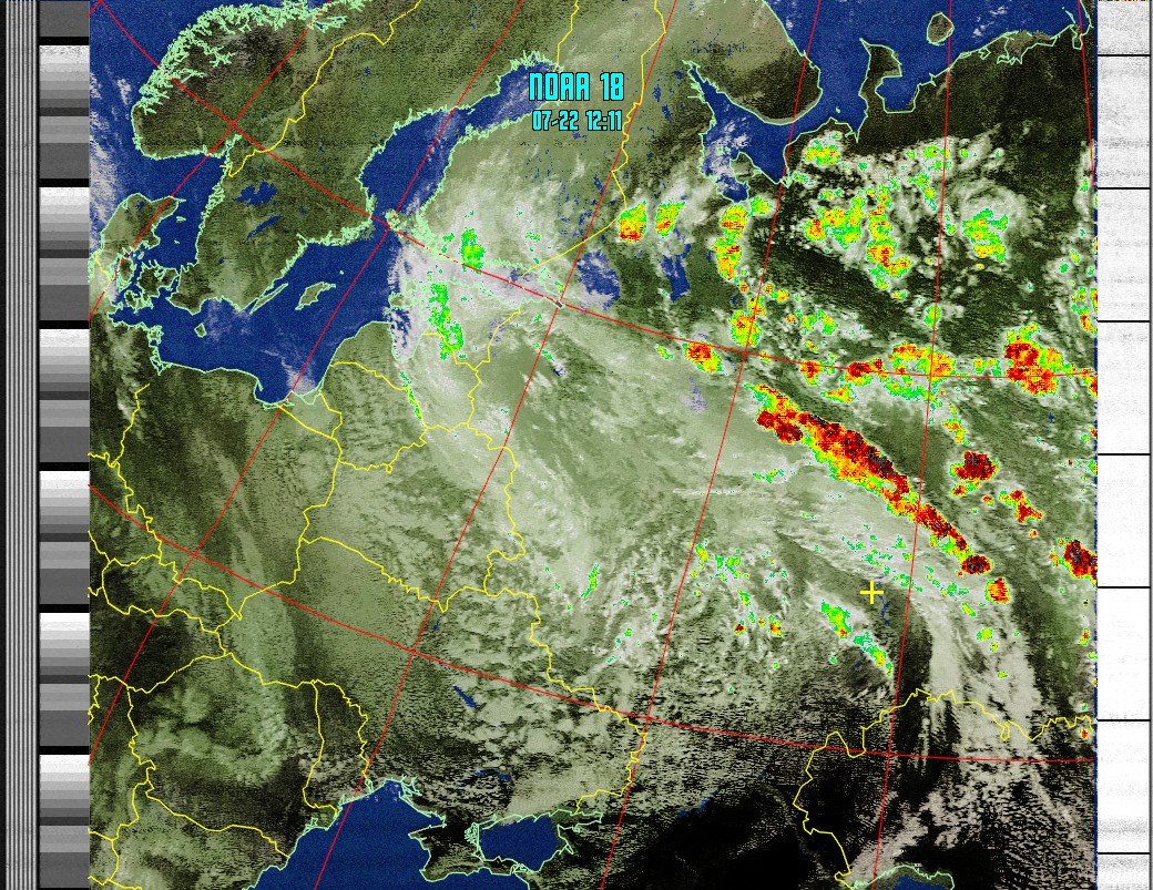 NOAA-18 (MICR with precipitation) Анализ облачности с областями метеоактивности