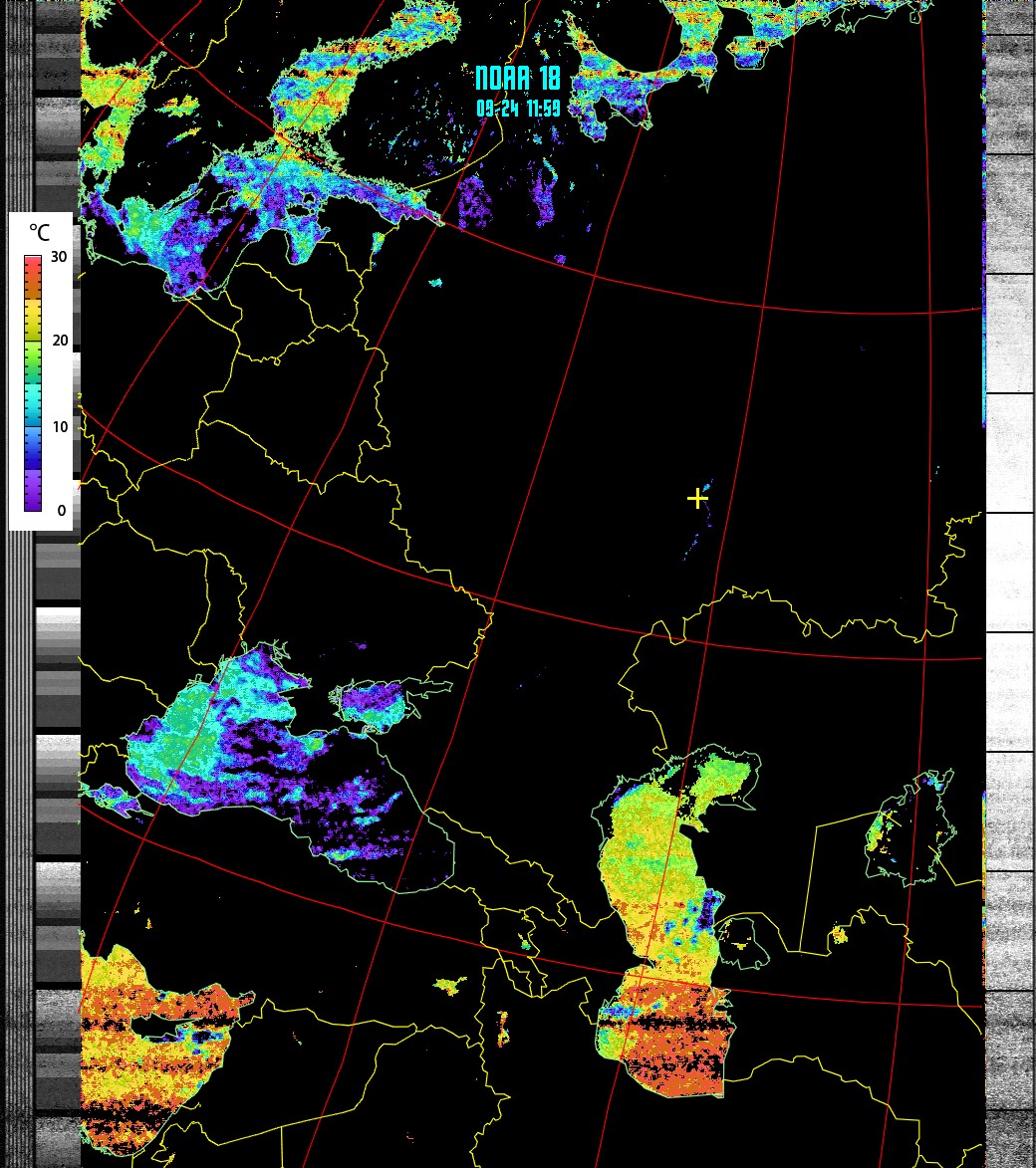 NOAA- 18 (sea termal) Температура водной поверхности.