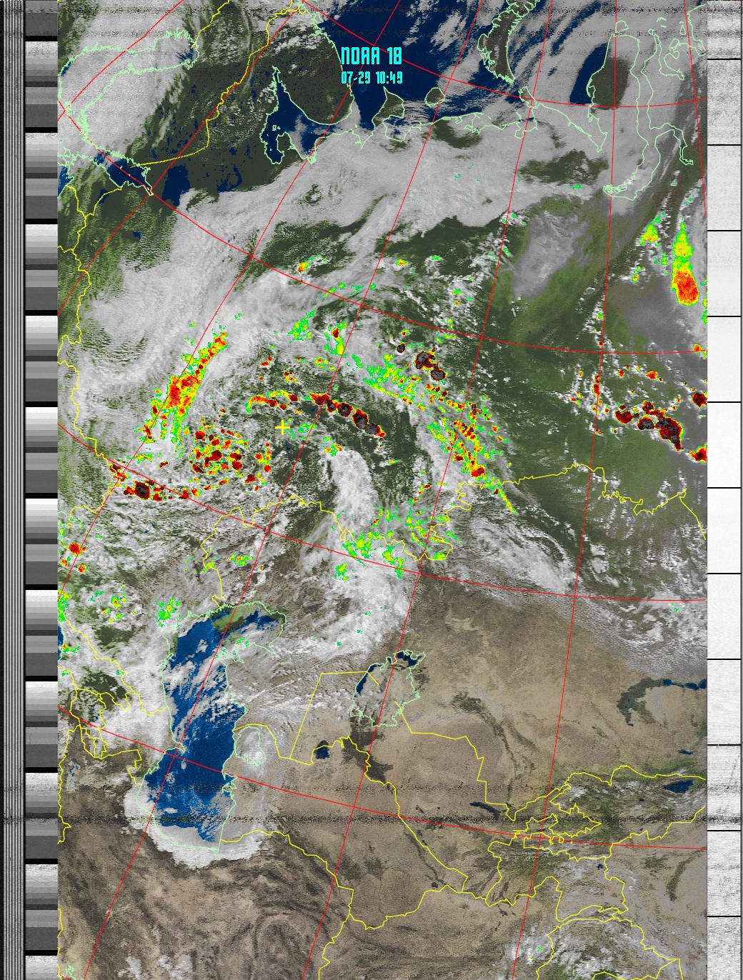 NOAA-18 (MSA with precipitation) Мультиспектральный анализ облачности с облатями метеоактивности