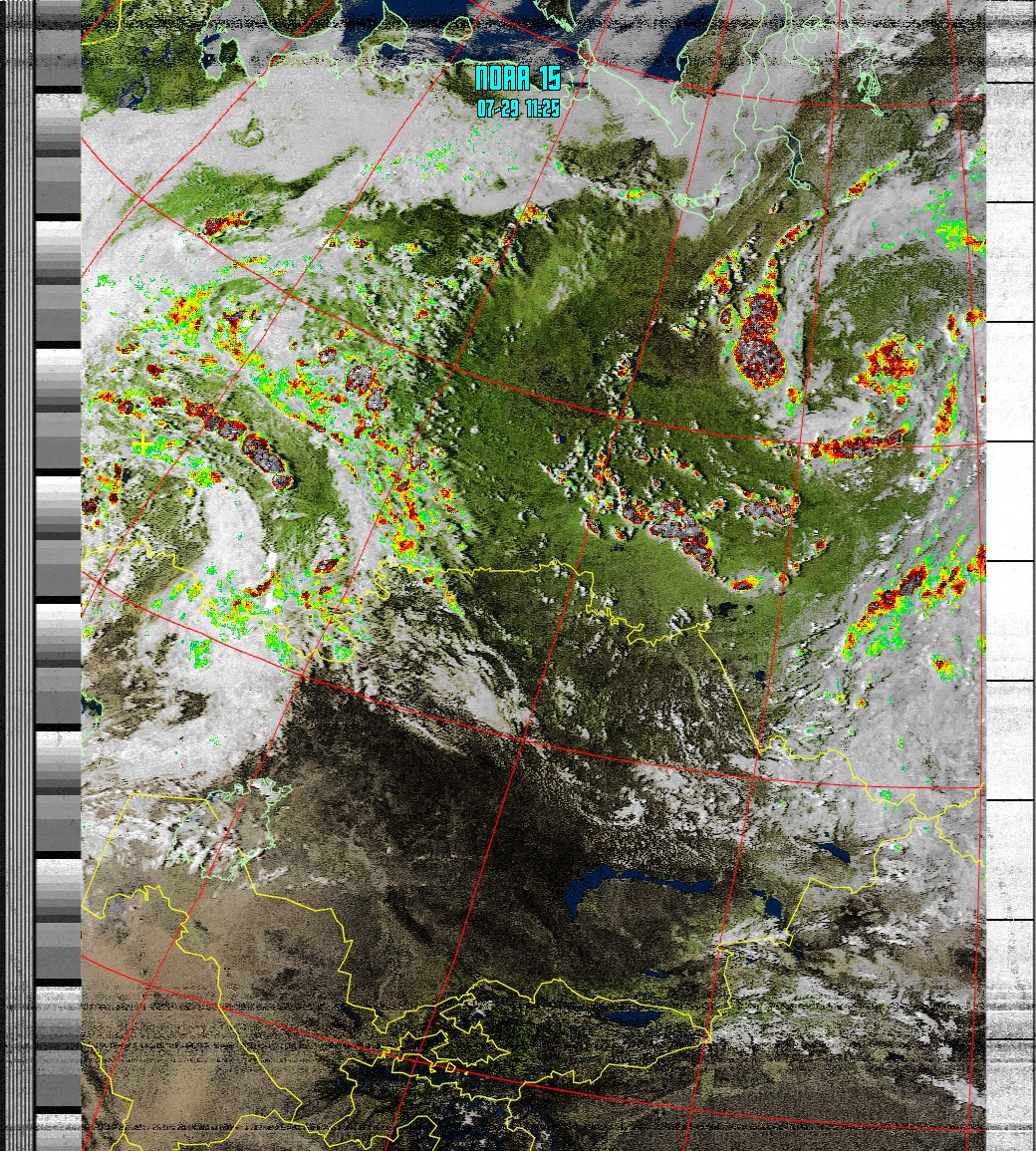 NOAA-15 (MSA with precipitation ) Мультиспектральный анализ облачности с областями метеоактивности