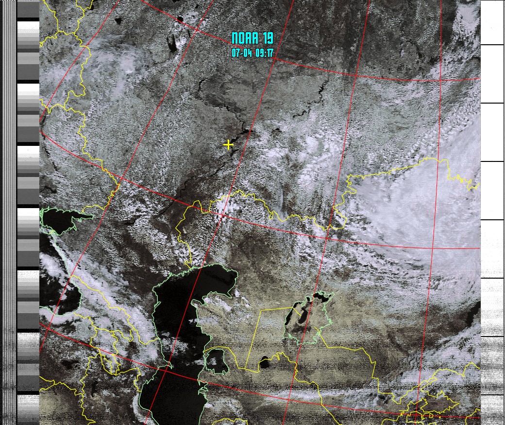 NOAA-19 Композитное изображение. (Class enhancement) Контрастная облачность