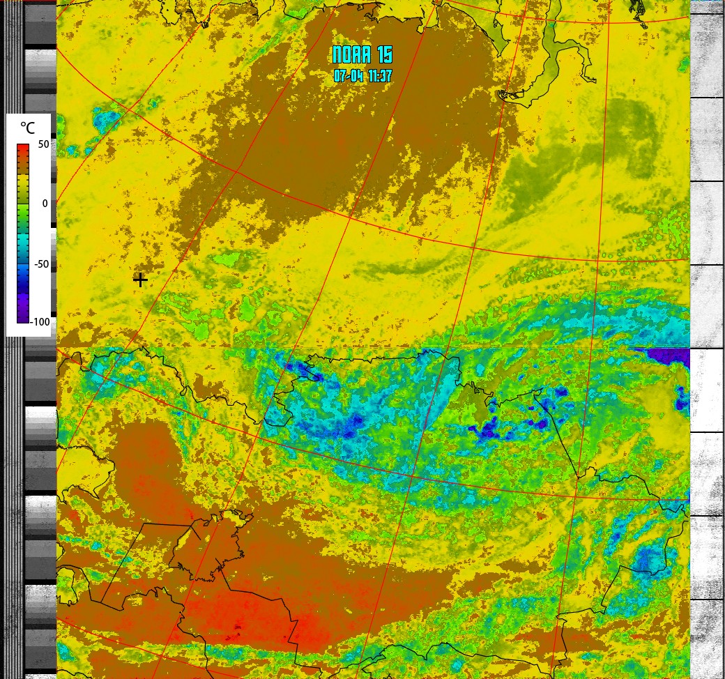 NOAA-19 Композитное изображение. (Температура) (Обрезаны области с шумом)