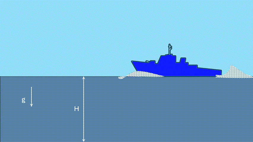 Еще более наглядный пример подобного барьера связан с реальной историей испрытания нового быстроходного эсминца в еще царской России в акватории Финского залива. История этого явления описана была в замечательной книге "Волны вокруг нас" Кадомцева Б.Б. и Рыдника В.И. Суть происходящего сводилась к следующему. Эсминец на испытаниях должен был продемонстрировать максимальную скорость движения примерно в 40 узлов, т.е. примерно 70 км/час. Но при полной нагрузке котлов скорость эта не увеличивалась больше 30 узлов, т.е. не больше 55 км/час. Этот казус происходил на глазах самого Николая II, что вызывало у капитана эсминца желание выжать из котлов все, что можно. Как описывали свидетели, котлы раскалились до уровня, за которым мог последовать взрыв, а за кормой эсминца, что очень примечательно для нашего обсуждения, появилась гигантская по высоте, так называемая, спутная волна. Испытания прекратили, а объяснения дал замечательный русский, а затем и советский математик, механик и кораблестроитель А.Н. Крылов. Физика такого скоростного барьера состоит в том, что в условиях небольшой глубины жидкости $H$ волновые течение жидкости подчиняются уравнениям, аналогичным электромагнитным волнам в однородной среде. Скорость таких волн рана величине $v_{cr}=\sqrt{gH}$, где $g$ - ускорение свободного падения. Корабль, двигаясь по поверхности жидкости, создает волны, движущиеся как раз со скоростью $v_{cr}$. Если плавно набирать скорость, то двигатель корабля будет расходовать свою энергию на излучение волн и не сможет превысить ее. Это и произошло с упомянутым эсминцем. Глубина моря в Финском заливе в месте, где проводились испытания, не превосходит 30 м. Поэтому $v_{cr}\simeq\sqrt{300}\simeq 17$ м/с или порядка $34$ узлов или $60$ км/час. Впоследствии испытания произвели в более глубокой части Балтийского моря, и в этом случае они прошли успешно.